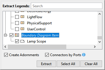and from the drop-down menu, select Extract Legends. - Select the Legend(s) you want to display and click Extract.