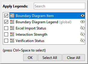 and from the drop-down menu, select Apply Legends. - Select the Legend(s) you want to display and click OK.