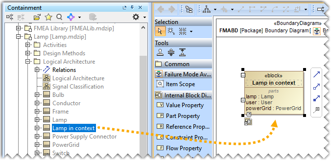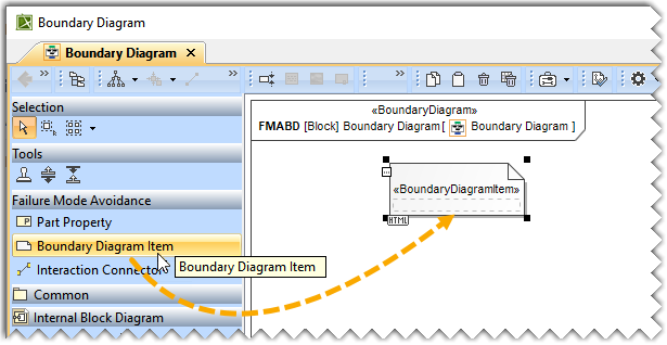 - Drag and drop the Boundary Diagram Item element in the diagram pane.