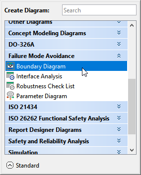 - In the dialog, expand Failure Mode Avoidance and select Boundary Diagram.