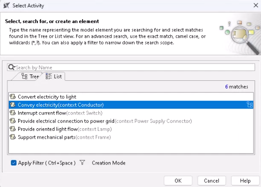 the icon found near the Activity Element. - In the Select Activity dialog, select the Activity and click OK.