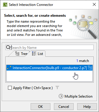 - In the Select Interaction Connector dialog, select the required Interaction Connector.