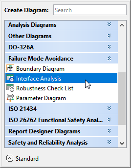 - In the dialog, expand Failure Mode Avoidance and select Interface Analysis.