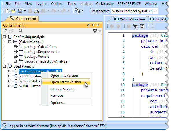 Open This Version - to open the used project version that the main project currently uses. If the used project version is not the latest one, the project will open in read-only mode.