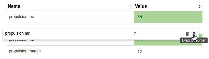 to add a new row at the bottom of the table. - Click the Name and Value cells of the new row and enter the desired property name and value.