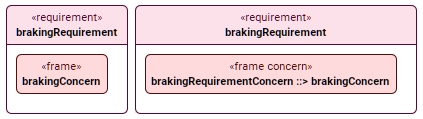 frame concern brakingRequirementConcern ::> brakingConcern { // step 1.b - named usage frames another concern usage via reference subsetting
