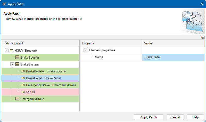 - In the Apply Patch window, review the changes that will be applied to the project.