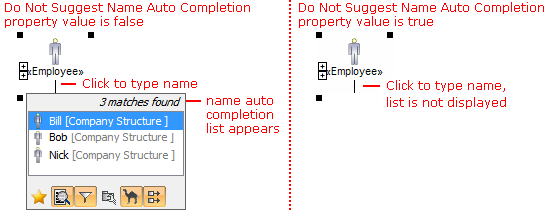 UML Profiling and DSL Guide 2026x Domain Specific Language customization Creating Customization Data Customization Elements Current: Do Not Suggest Name Auto Completion Do Not Suggest Name Auto Completion The property is useful when you do not want to display the name auto completion list for DSL elements typically displayed only in one diagram, or if the names of the DSL elements are full sentences or fragments of sentences.To hide the name auto completion listIn the Customization Specification window, click the Customization Target property and then select a customization target.Set the Do Not Suggest Name Auto Completion property to true. Reopen the project. Example of name auto completion list that appears when typing a DSL element name. Related Pages Creating Customization DataUsing Customization DataCustomization ElementsCustomization Element Properties DescriptionCustomization TargetCreating your First CustomizationCreating and specifying derived propertiesDefining expressions ×