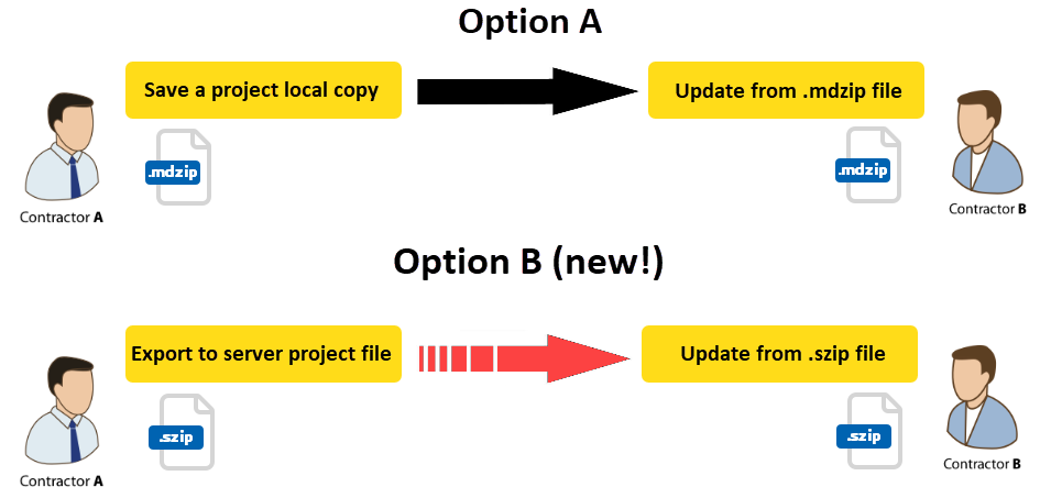 In version 2022x Refresh2, we introduced .szip – a new server project exchange format. It addresses the issues of slow performance and project structural changes associated with the .mdzip format. Using .szip, you can export and import projects more quickly without altering the project structure.