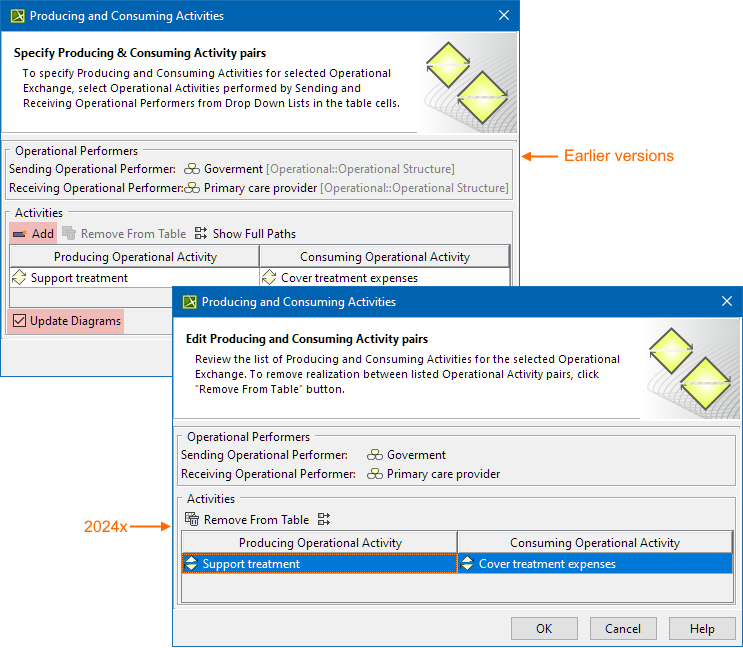 We've made some changes in the Producing and Consuming Activities/Functions dialogs as well. They now serve as tools for reviewing Activity pairs and easily removing any unnecessary ones.