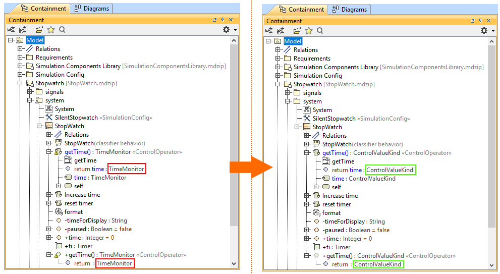 The getTime behavior and operation with «ControlOperator» stereotype applied have parameters that type must be ControlValueKind enumeration.