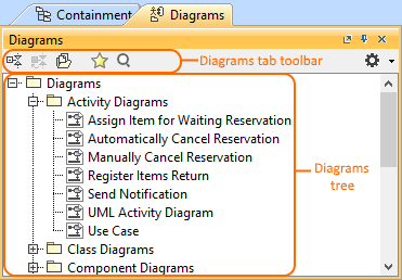 The Diagrams tab in the Model Browser represents diagrams created in your project.