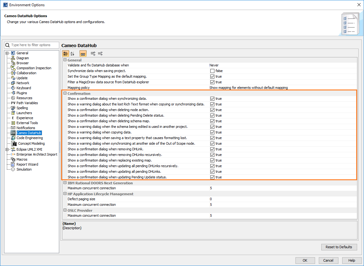 Confirmation DataHub Options Dialog.png