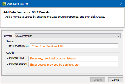 To add a Data Source for an OSLC Provider