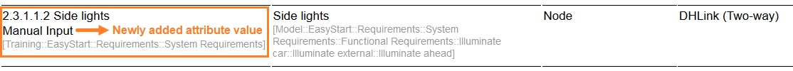 DataHub uses report template code from its report template to create the layout and detail of a DHLink Summary report. You can find the report template file in <install_root>\plugins\com.nomagic.datahub.magicdraw\data\templates\relation.html. You can edit the report template file with any text editors to add more information to the report template. In this scenario, you want to add another attribute to the report template.