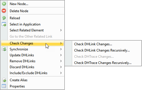 The Check Changes command also checks for changes in the hierarchy of the node that has DHLinks.
