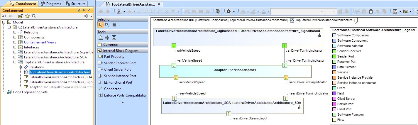 This diagram is a specialization of SysML Internal Block Definition Diagram for the Software Architecture in Magic Systems EE Architect.