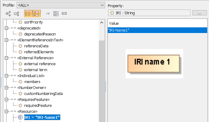 - When creating or updating a «Resource» IRI tagged value, the UML Package URI value will be updated to be the same as the IRI tagged value.