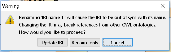 - Cancel. The IRI stays the same and the class name does not change.
