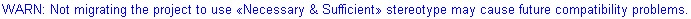 Notification Window saying that the Necessary and Sufficient stereotype is not applied and warning that it may cause problems.