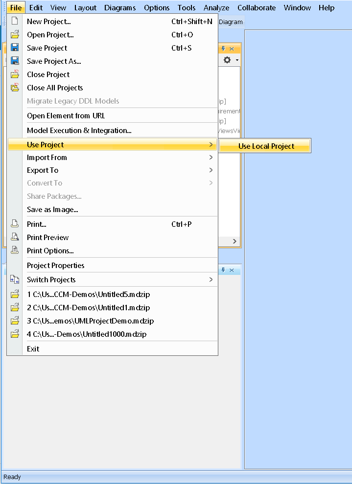 - If you have already installed the MCM plugin, click File > Use Project > Use Local Project.