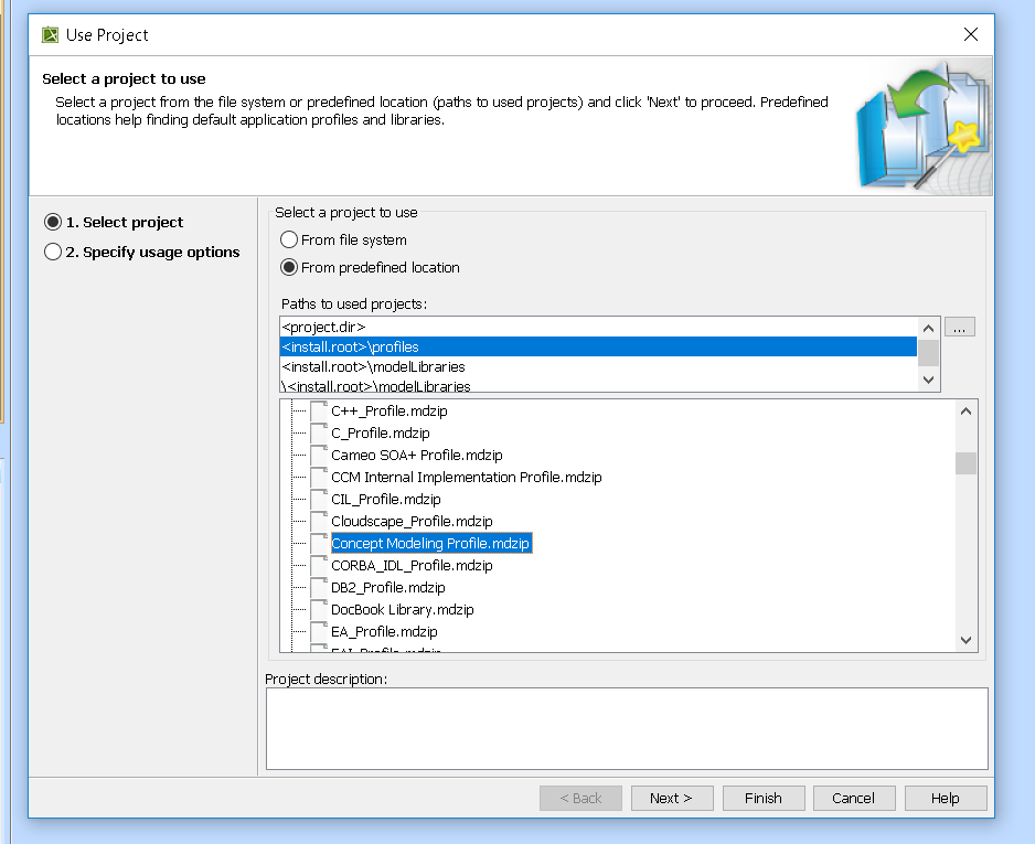 To add the Concept Modeling profile using Project Usages