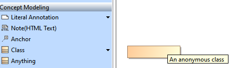 When you hover over the newly created anonymous class, description of each anonymous class appears in the containment tree, specification window, and diagram.