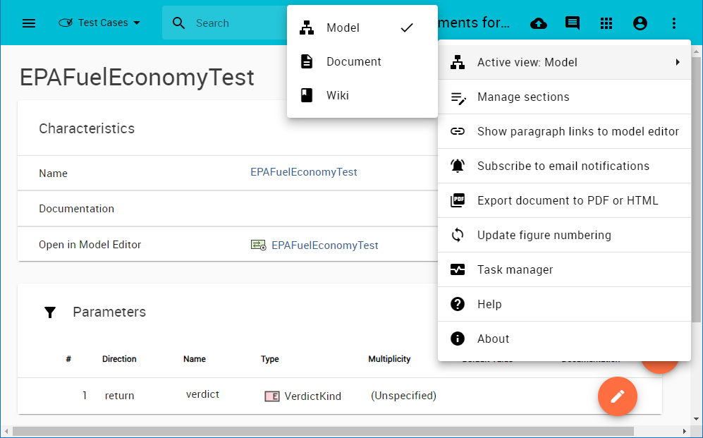 • Wiki view: Similar to the Document view, The Wiki view hides model details while displaying the content of just one section, like the Model view.