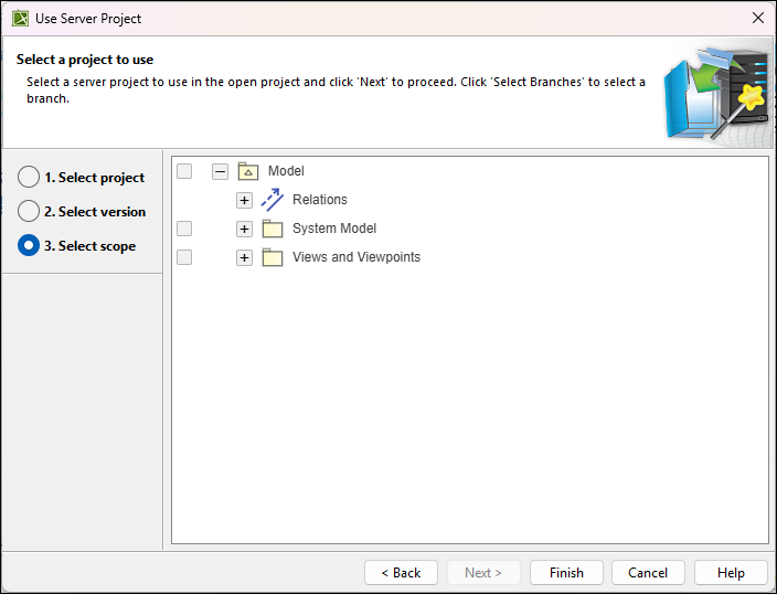 The Element chooser service allows you to select model elements in a modeling tool using the web UI. You need to run this service to be able to use the Partial project usage functionality.