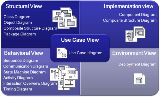 UML defines 13 diagrams that describe 4+1 architectural views: