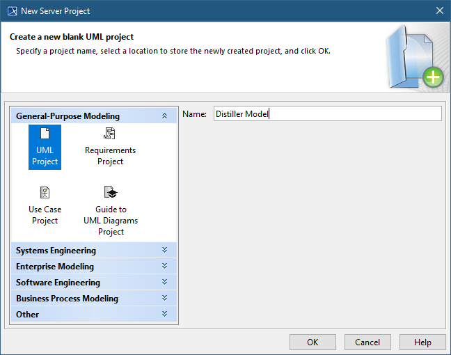 • In the main menu of a modeling tool, select Collaborate > New Server Project.