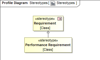«Performance Requirement» stereotype inherits the customization of the SysML «Requirement» through a generalization.
