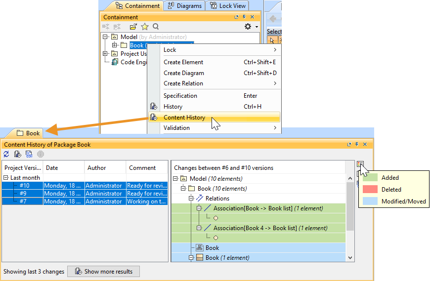 History of element changes in the scope of a Book package.