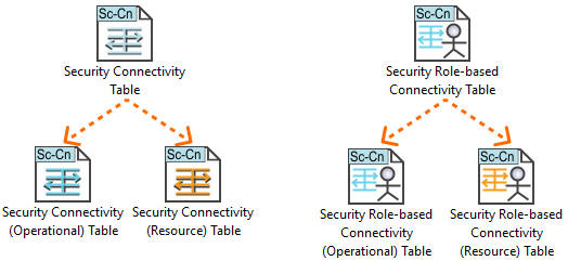 Beginning with version 2024x Refresh1, the Security Connectivity and Security Role-based Connectivity tables have been redesigned into dedicated diagrams focusing on the Operational and Resource viewpoints: