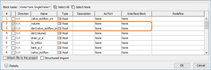 If the checkbox is selected, the imported FMU file is automatically attached to the model. If the Attach file to the project is checked in the FMU Import Options dialog, a previous version of the attached file is replaced with a new one upon import. | |