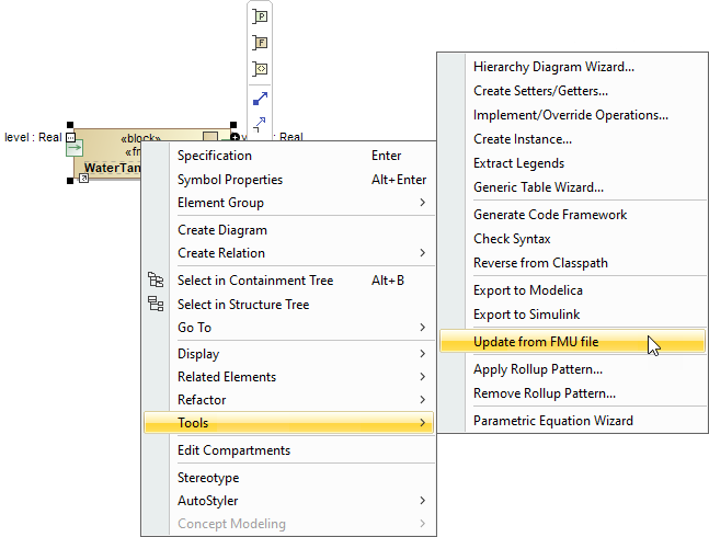 Alternatively, you can update the FMU Block directly from the shortcut menu.