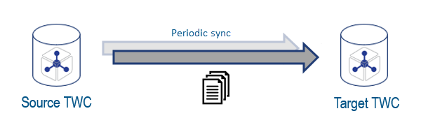 You can periodically synchronize Teamwork Cloud resources from the source server to the target server so that other users can use synchronized projects in other projects stored on the target server.