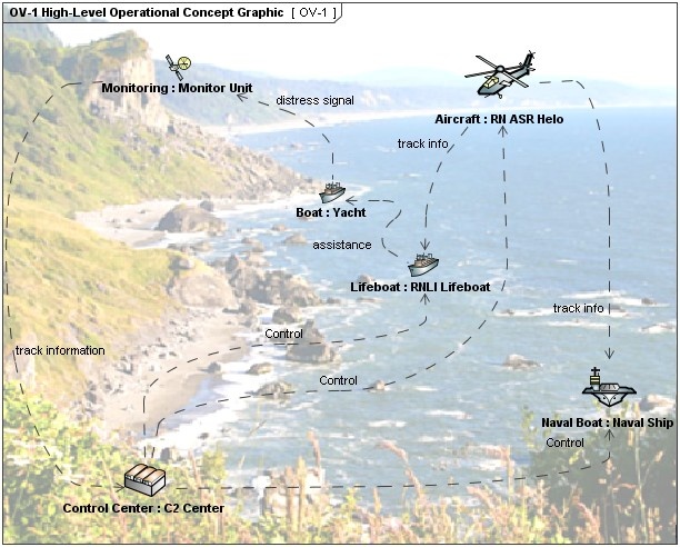 - OV-1 diagram which is based on the UML Composite Structure diagram.