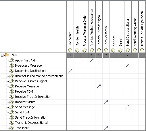 SV-5 can be represented using a SV-5 diagram which is an editable Dependency Matrix. The Functions will be used as the row elements and the Operational Activities will be used as the column elements.