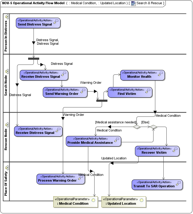 - NOV-5 diagram for Operational Activity flows. This diagram is based on the UML Activity diagram.