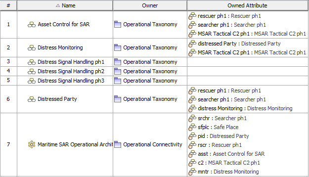 - Operational Taxonomy table. This table can be used to create and describe major domain elements faster.