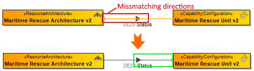 Directions of realizing relationship and realized Resource Exchange do not match.